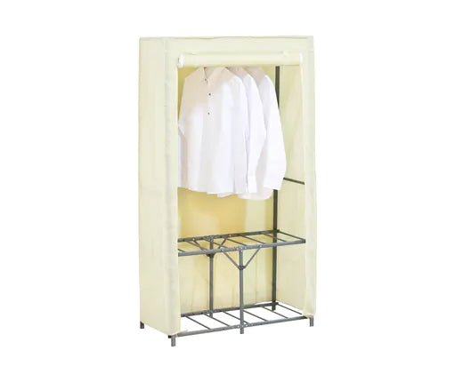ארון אחסון מתקפל, עשוי בד איכותי בצבע בז', ארון קל ונוח בעל 2 מדפי אחסון רחבים בשילוב מוט תליה.