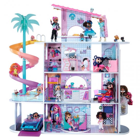 OMG! תראו את בית הבובות הענק מעץ של L.O.L, בית הבובות מכיל 85 (!) הפתעות שמחכות שתחשפו, תתרגשו ותשחקו איתן. לבית הבובות עשרה חדרים מרוהטים ומאובזרים הפרוסים על גבי ארבע קומות, חדר שינה, מקלחת, מטבח, סלון, בריכה, מרפסת על הגג, אולם קולנוע, חדר אוכל ועוד חדרים המחכים שתגלו אותם (כולל שישה חדרים מסתובבים המסתירים עוד הפתעות שעליכם לחשוף).