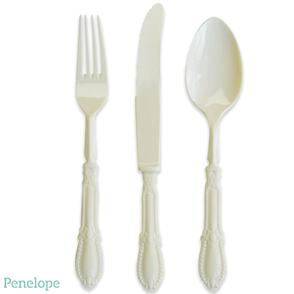 סכו"ם (מזלג/סכין/כף/כפית) מפלסטיק קשיח במיוחד, בצבע שמנת בעיצוב וינטאג' קלאסי. יש לבחור את הסוג הרצוי מזלג/סכין/ כף/כפית, כל חבילה מכילה 10... לקרוא עוד
