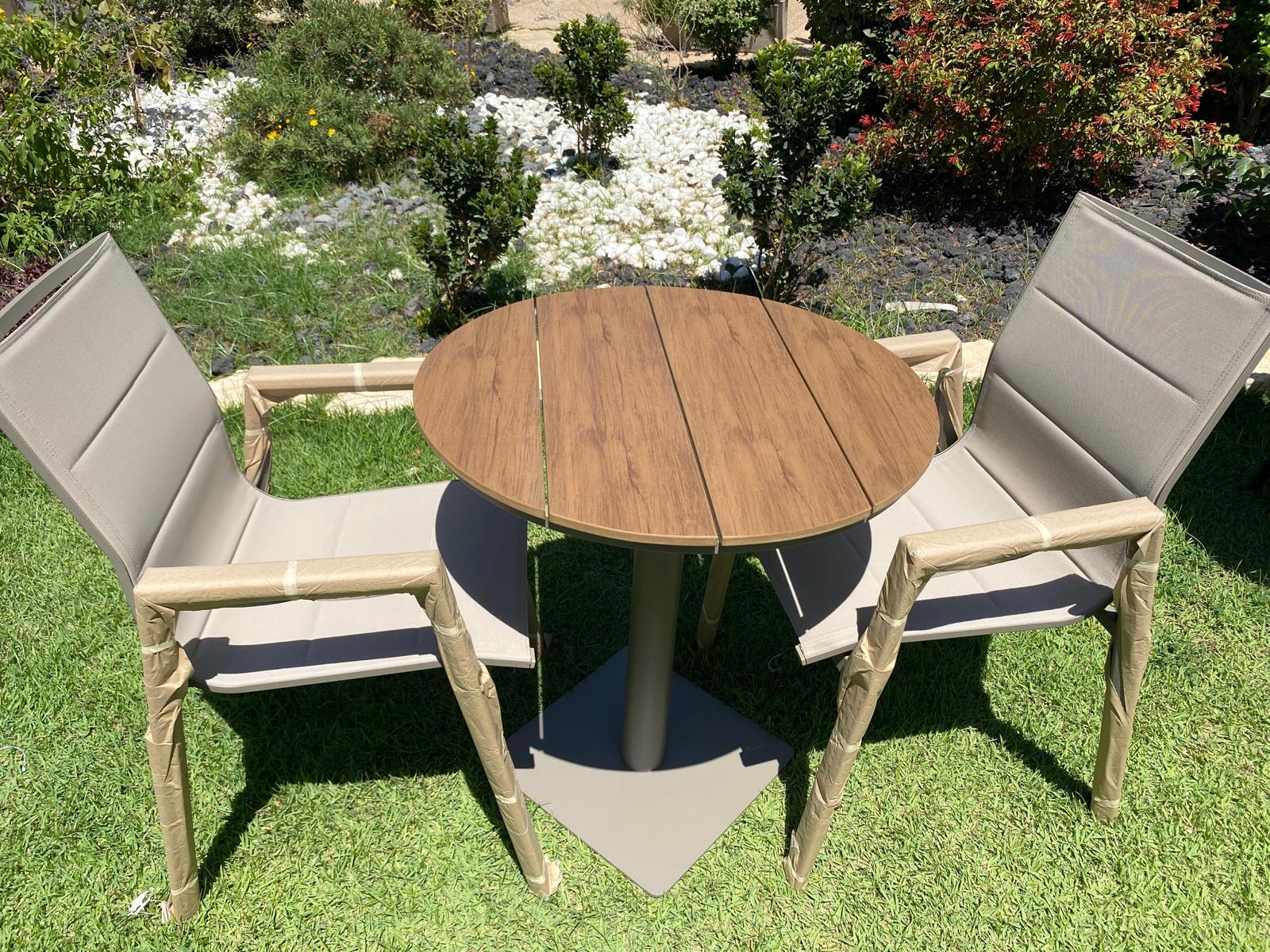 סט ישיבה זוגי - 2 כסאות נוח + שולחן עגול דמוי עץ